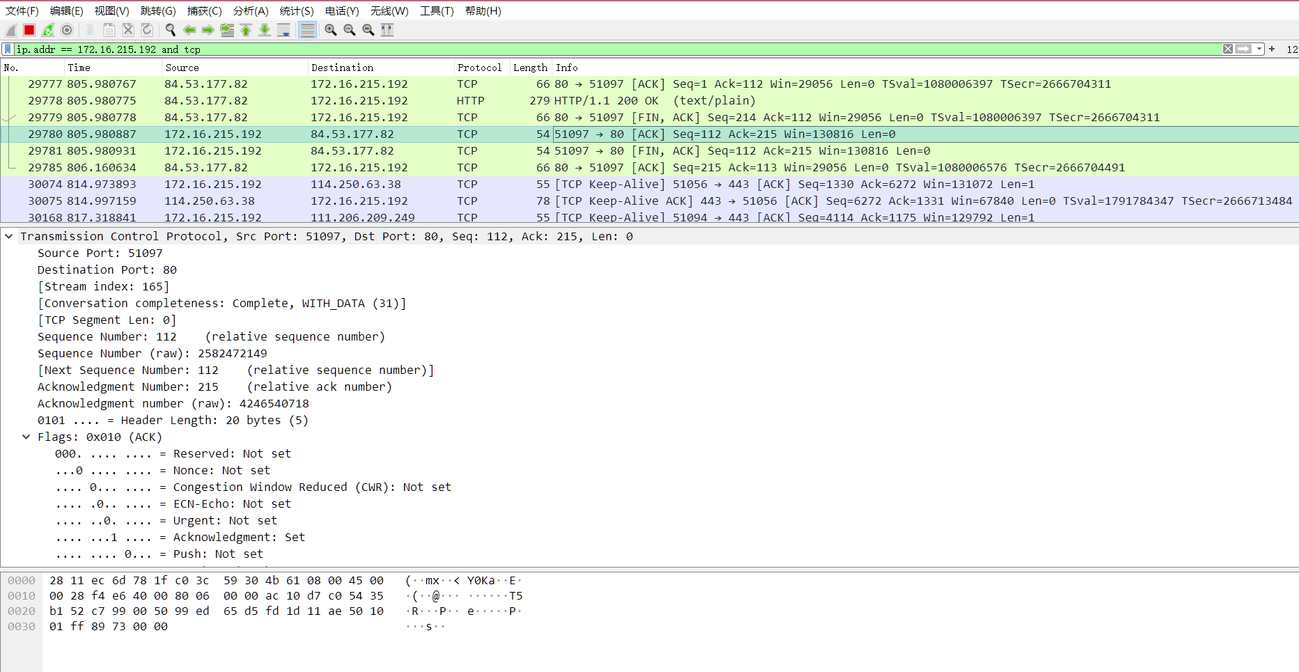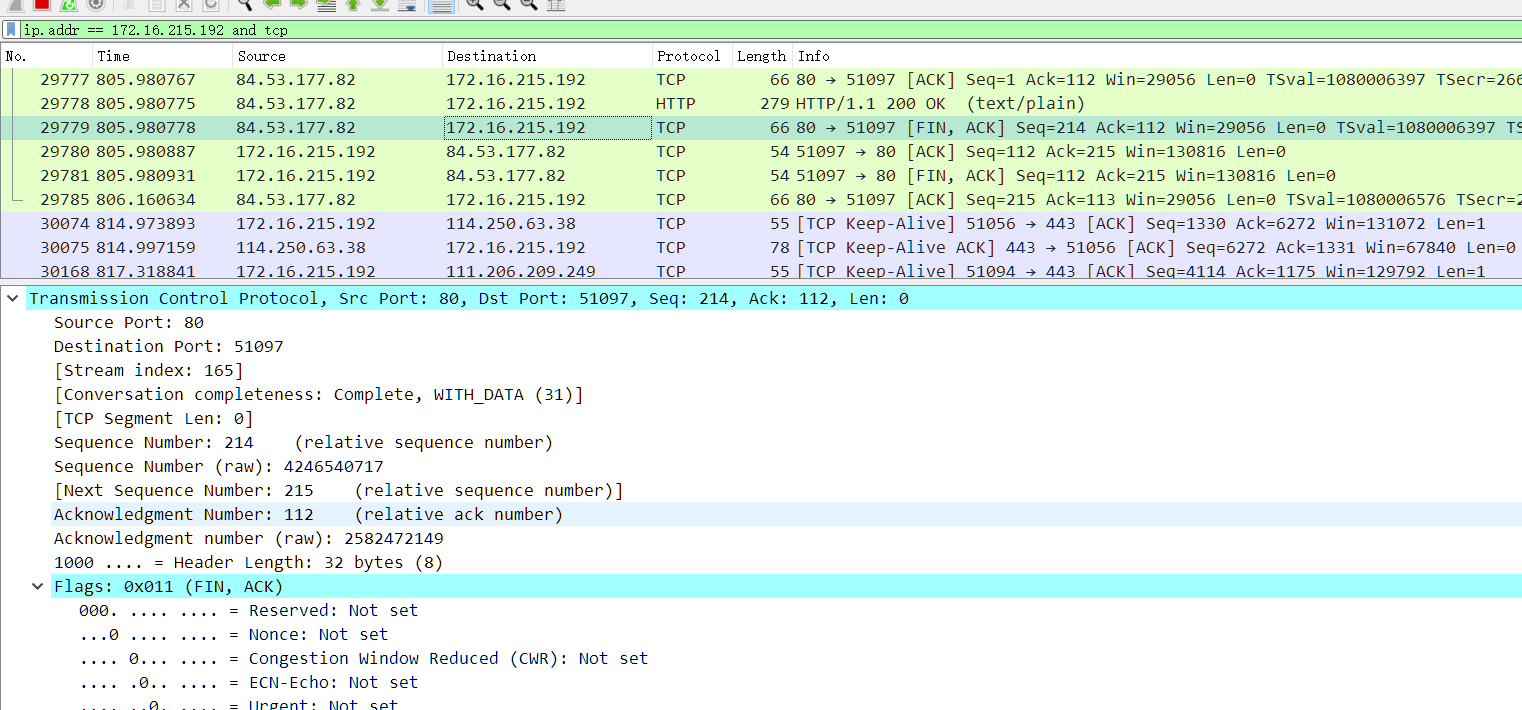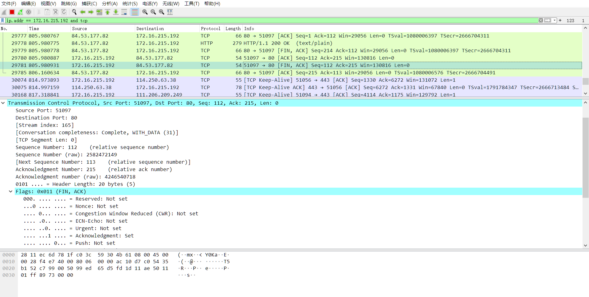 https://www.cnblogs.com/mq0036/p/11187138.html,访问一个网站,抓包分析一次TCP三次握手,四次分手的过程。