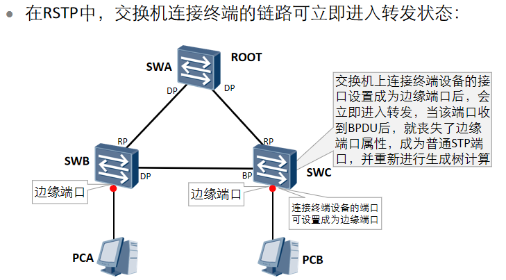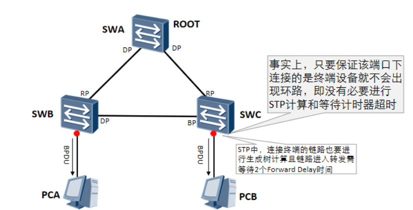 让一个指定端口,尽快进入转发状态,同时避免环路的发送