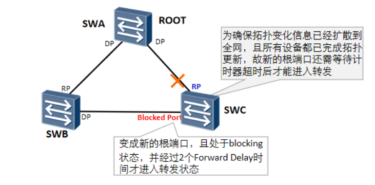 问题2.交换机BP(blocked) 端口,切换到RP的时候,至少要经历两个转发延时(15*2)