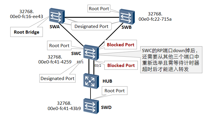 *实际上SWB与SWC之间的协商等同于退回到STP的模式,但是反正是Discarding状态,根本不影响其他业务转发。