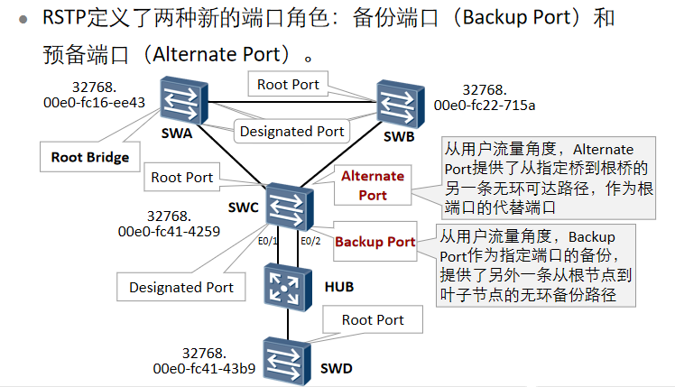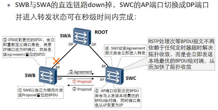 三、RSTP =》对STP技术的改进:端口角色、状态等