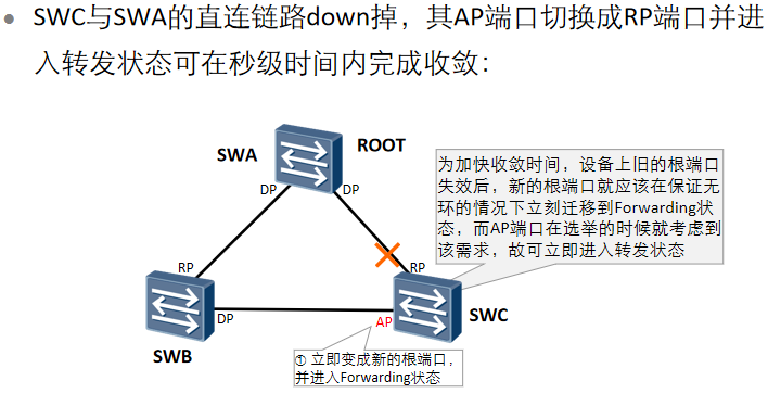 端口切换不需要等待转发延时,相当于STP的uplink-fast