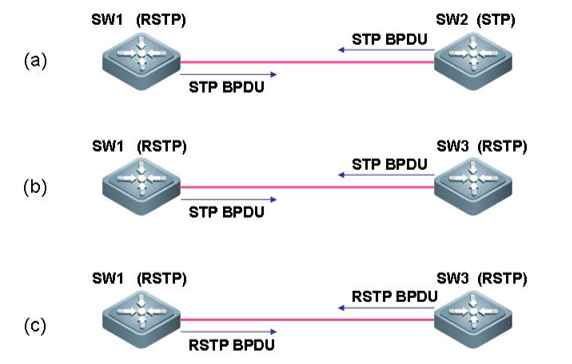 c.SW1支持RSTP,发送的报文是RSTP报文 SW#支持RSTP,发送的报文是RSTP报文 ===》RSTP