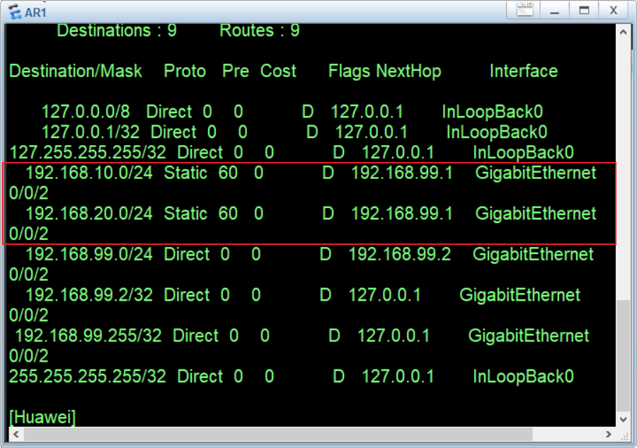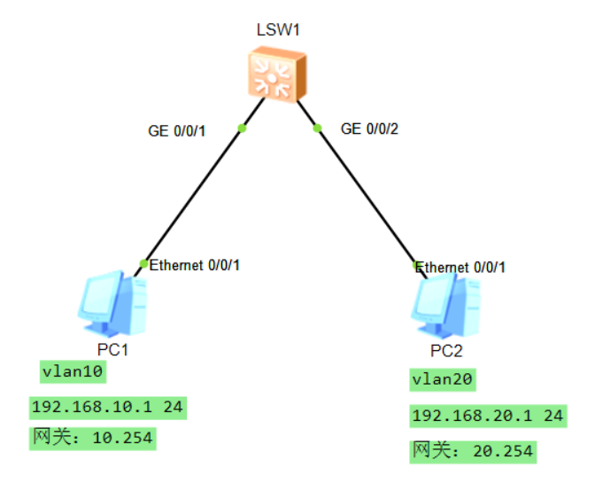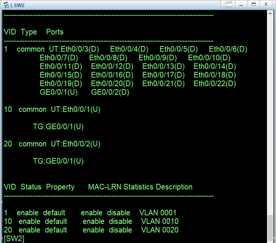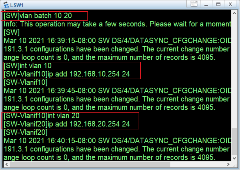 ##注释:vlanif (vlan interface )基于vlan的三层接口,这个接口是一个虚拟的接口(SVI),并且可以配置IP地址,同时支持路由功能的直连路由,vlanif接口可以作为三层交换机下方用户的网关。Cisco的叫法 :SVI switch virtual interface
