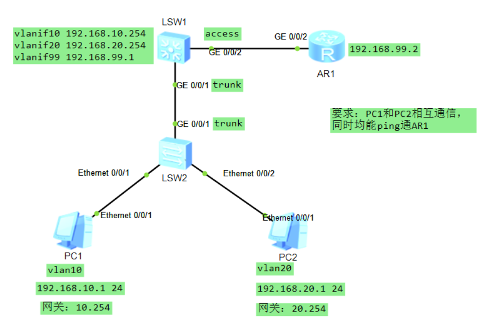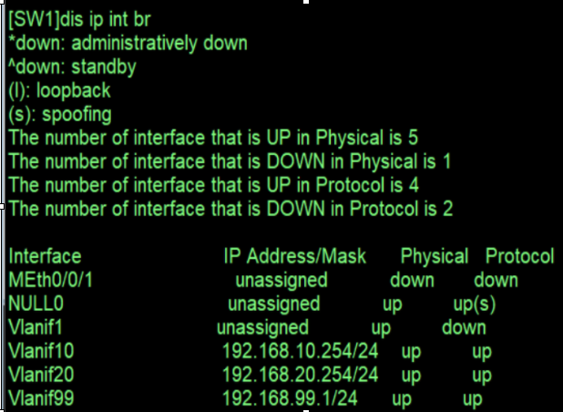 2.vlanif 想要生效,在相应的vlan下,没有物理接口,那么一定要有一个激活的trunk接口,并且允许 vlanif 所对应的 vlan通过