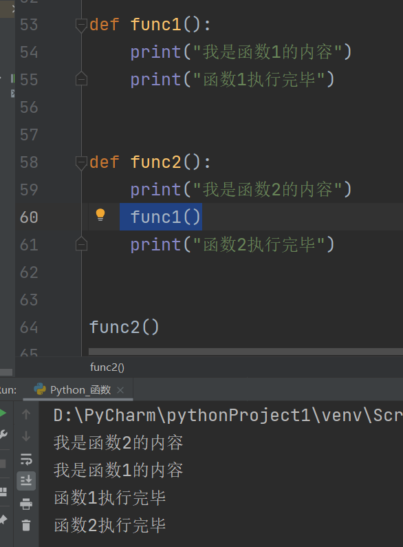 调用函数很简单,通告函数名() 即可完成对函数的调用