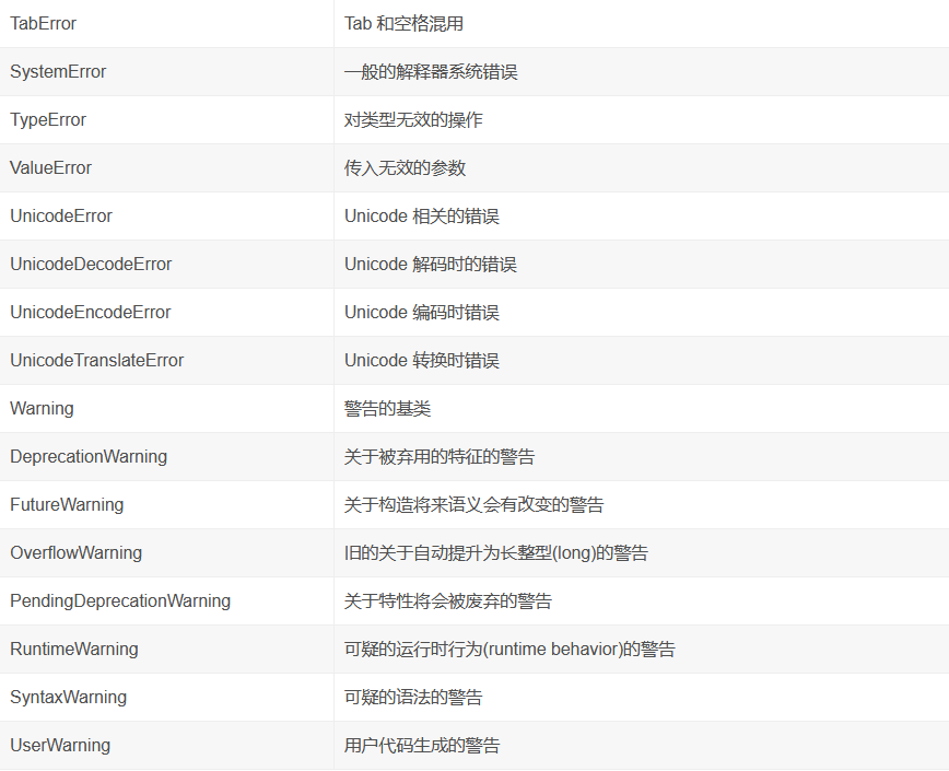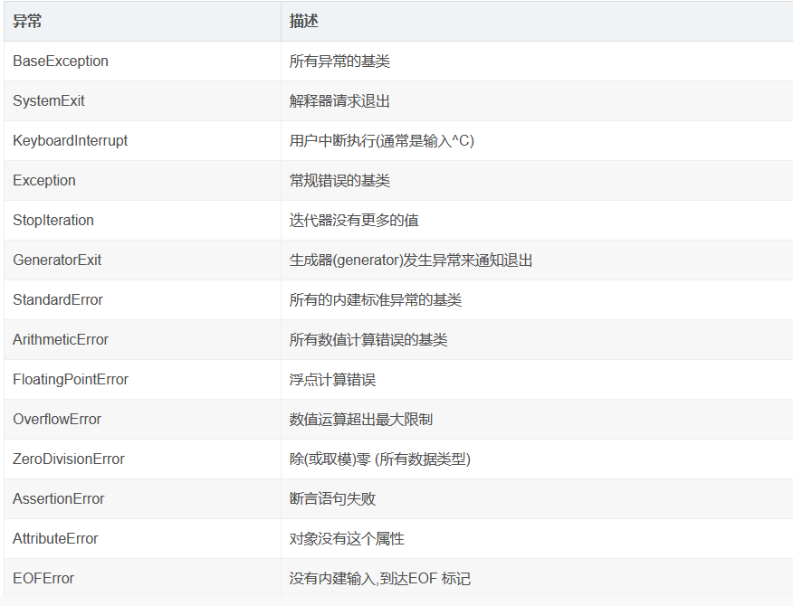 3.Python中提供了 一个Exception 异常类