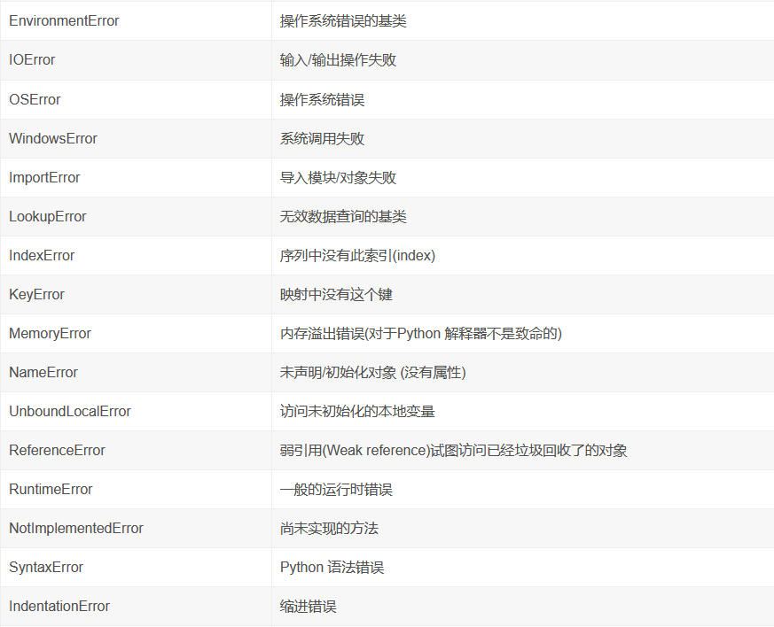 2)当Python 解释器抛出异常时,最后一行错误信息的第一个单词,就是错误类型