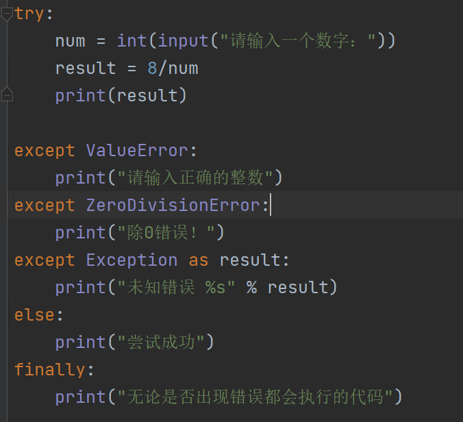 如果希望程序无论出现任何错误,都不会因为 Python 解释器抛出异常而被终止,可以增加一个except