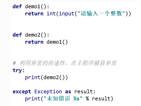 2. 而在主函数中调用的其他函数,只要出现异常,都会传递到主函数的异常捕获中
