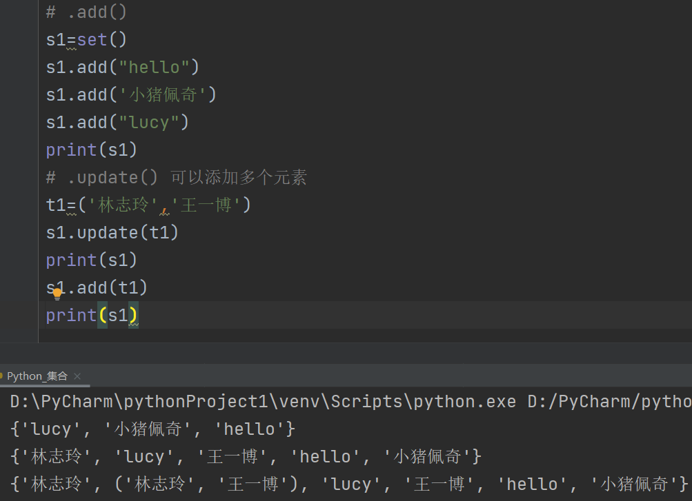 注意: my_set = {} 这样的写法为一个空字典
