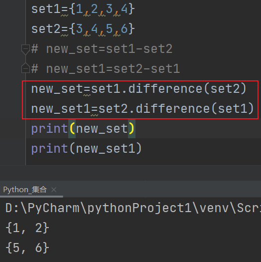 a.差集(-)