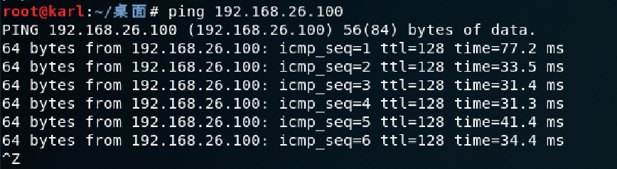 例如,希望查看本机发送的数据包是否可以到达192.168.26.100,就可以使用如图所示的Ping命令。