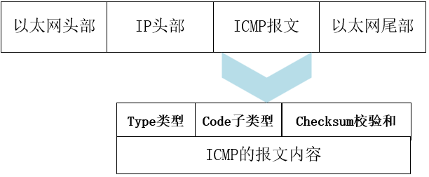 3、ICMP消息:ICMP消息封装在IP报文中,IP报文头部Protocol值为1时标识ICMP协议。