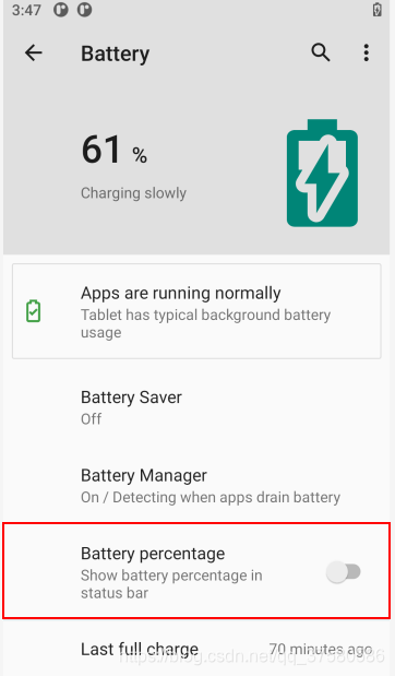 首先想到的是系统设置中的电池设置选项,就是让设备第一次开机或者恢复出厂之后默认打开显示电池电量百分比这个选项: