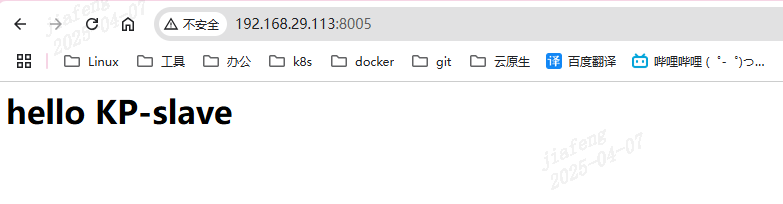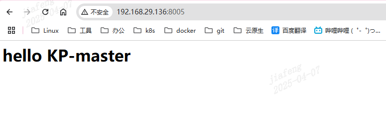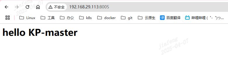 好了,我们现在访问192.168.29.113:8005这个vip+端口应该看到的就是hello KP-master