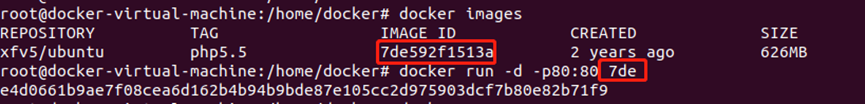 //启动镜像,将镜像内的80端口映射到本地的80端口上面;