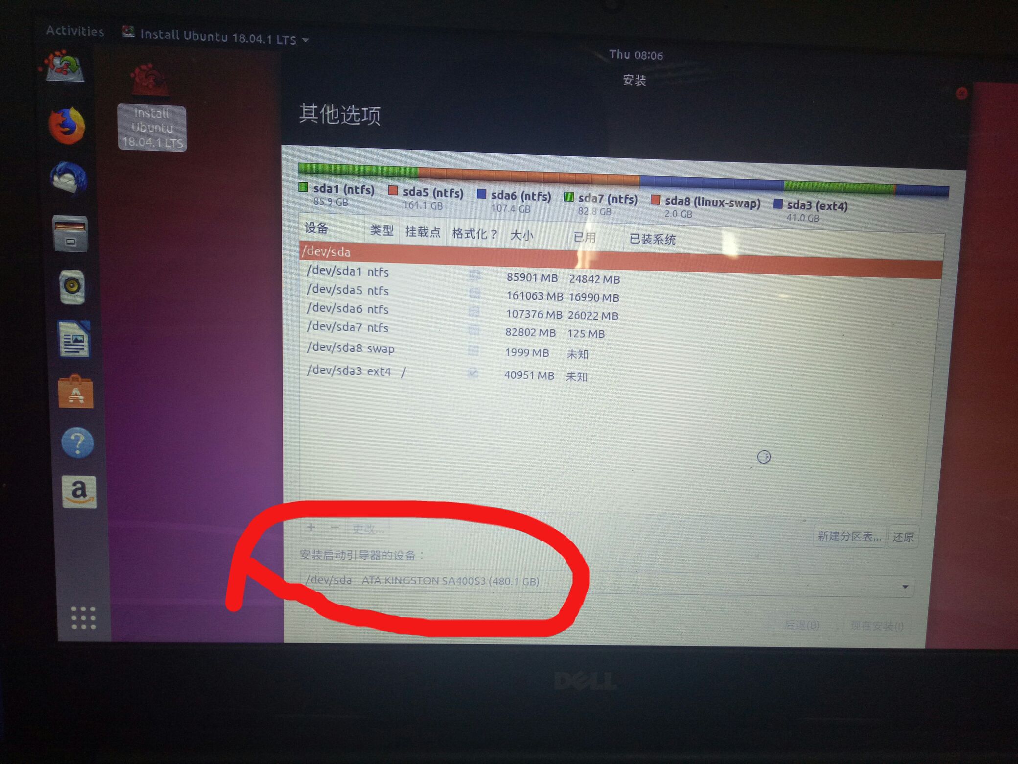 2. 安装启动引导器的设备一定要选择boot分区所在的设备,也就是boot所在的 /dev/sda/