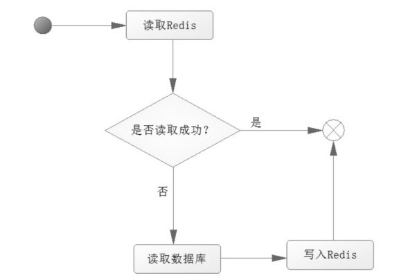 当第一次读取数据的时候,读取redis必然会失败,因为redis里没有这一数据,需要先从数据库中拿,然后写入redis。当第二次及以后读取数据时,就直接读取redis,读到数据就将数据返回,并结束这一流程,这样速度就大大提高了。redis也有写操作的流程,如下图所示: