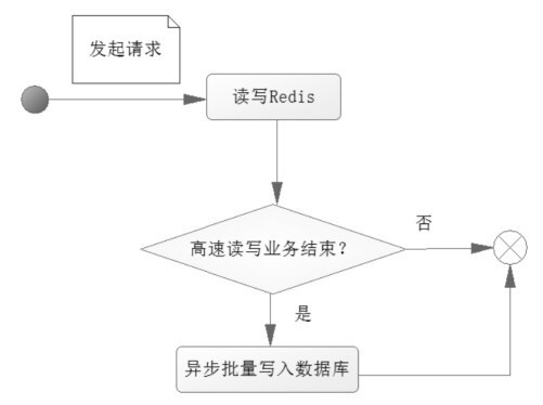 我们所知道的例如商品的秒杀、抢红包,抢票等等,在双十一零点的那个瞬间,可能就会有几十万个请求蜂拥而来,想想要在1秒内或更少时间处理这么多的请求,一般的服务器真是受不了。想想一个瞬间数据库就处理这么多sql语句,这样很可能会造成数据库的瘫痪以及系统宕机。我们也看到过某宝在双十一出现过界面延迟加载,系统崩溃等情况,我想一定要理解他们的工作人员,每次到这个时候都有不少的运维人员加班加点的维修,他们真的很辛苦。所以在这种情况下,我们往往考虑异步地去写入数据库,而在高速读或者写的情况下使用redis去应对,把这些需要高速读或写的数据缓存到redis中,而在满足一定的条件后,再将这些数据写入到内存中。流程图如下所示: