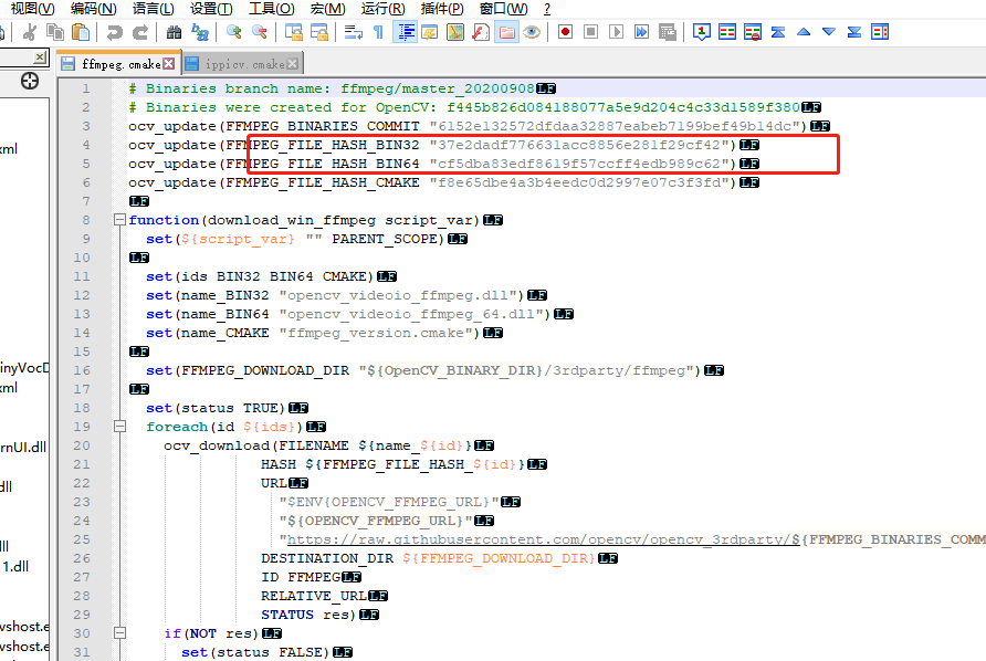 根据ffmpeg.cmake里的mad5 在dll前按如图加上前缀,将内容修改为: