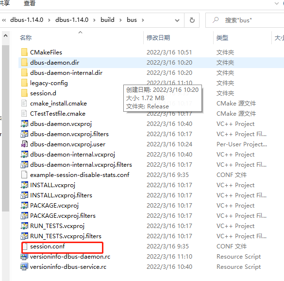 4.生成sln vs编译 把这个session.conf 拷贝到dbus-daemon.exe程序同目录下