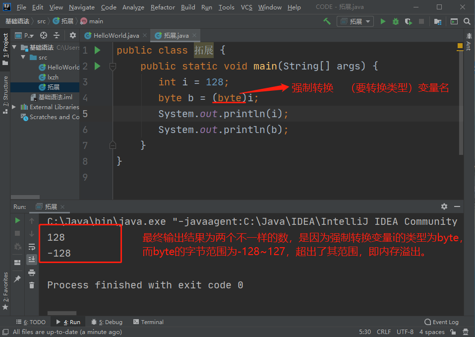 int i=128; byte b=(byte)i