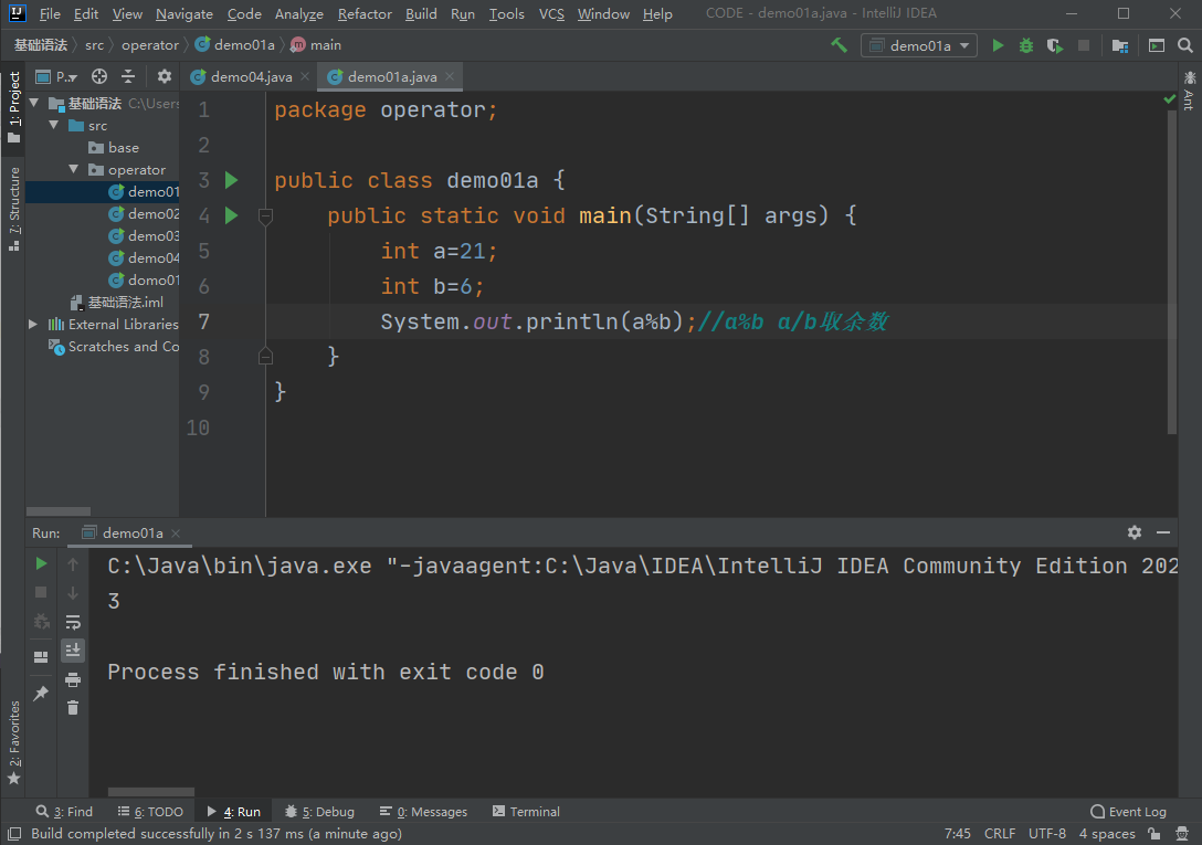 - 算数运算符号%意为取余数