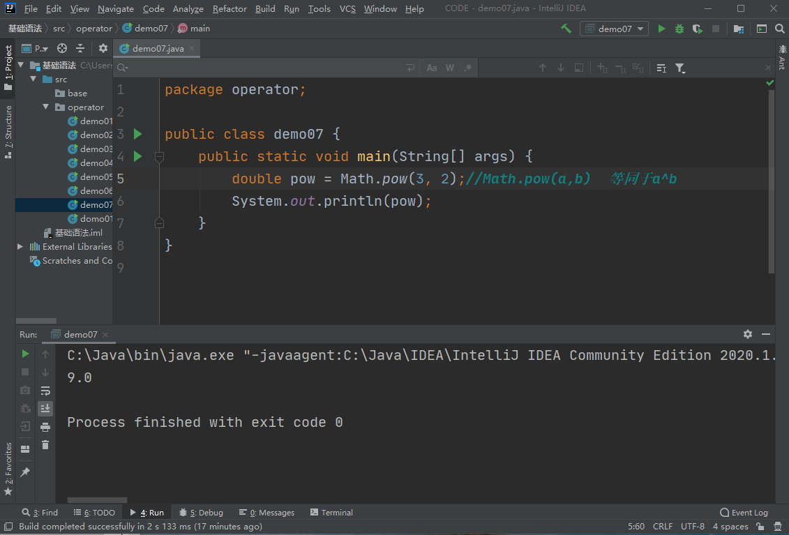 例如:double pow = Math.pow(3, 2);