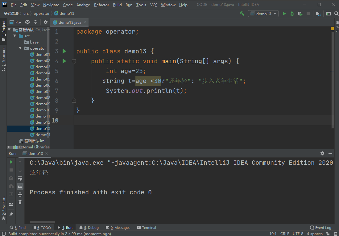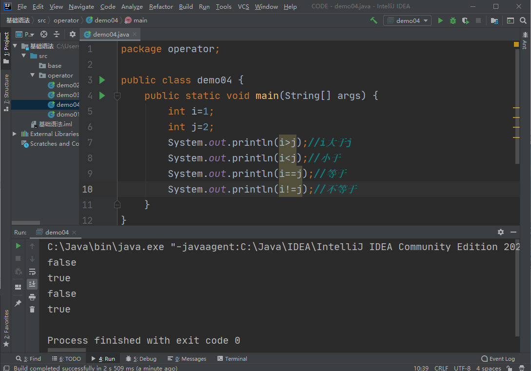 - 关系运算符:> < >= <= == (等于) !=instanceof(不等于)