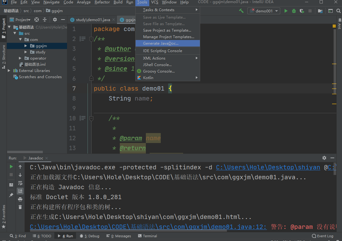 javadoc命令是用来生成自己的API文档的