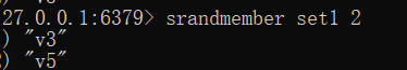 srandmember key n 随机从该集合中取出n个值。不会从集合中删除。