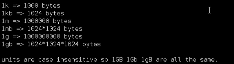 1.配置单位大小,定义了一些基本的度量单位,只支持用bytes,不支持bit,大小写不敏感。