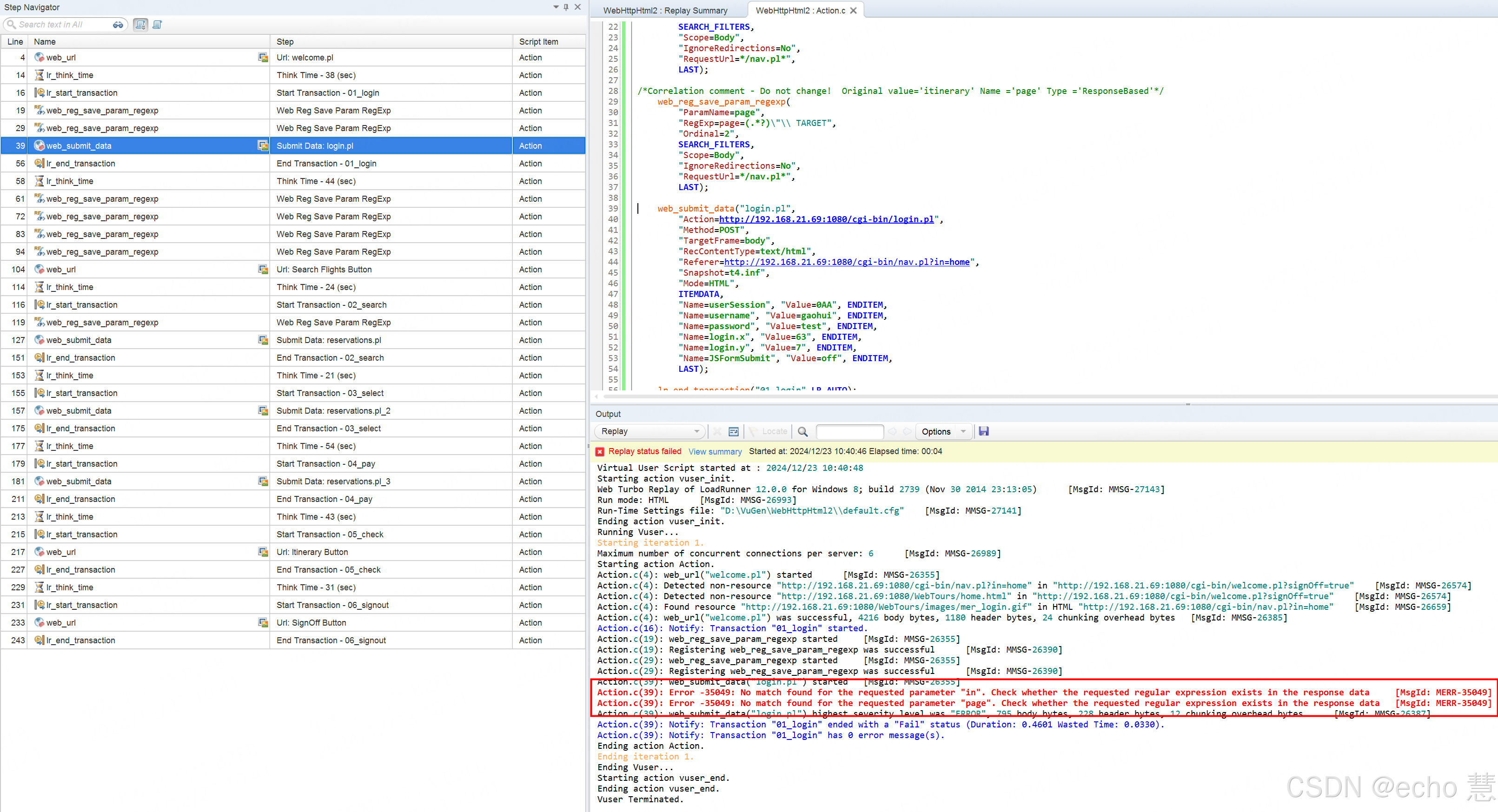 Loadrunner录制后,添加关联,进行回放,显示报错信息:No match found for the requested parameter “xxx”, check whether the requested…