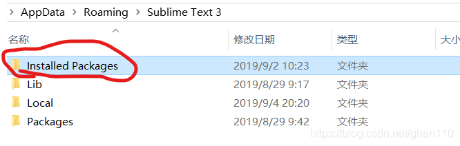 第二步,打开后返回上一级文件夹,选择Installed Packages文件夹,如图