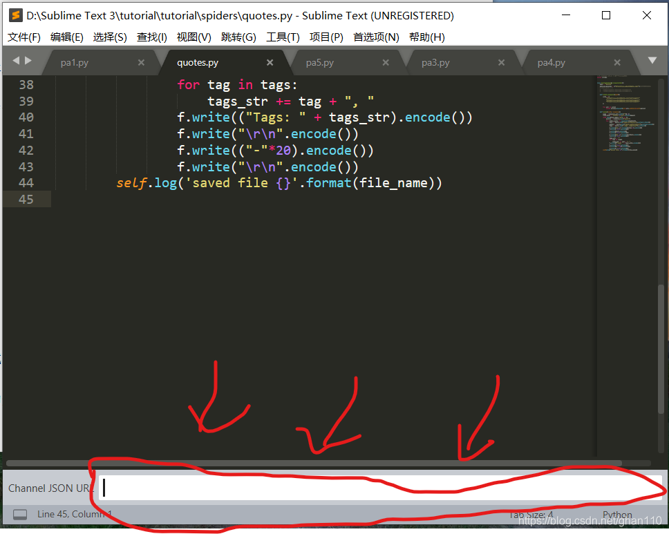 5、会出现如图,输入http://iguye.com/download/sublime/channel_v3.json,回车等待,安装完成后,即可下载安装sublime text 3插件。
