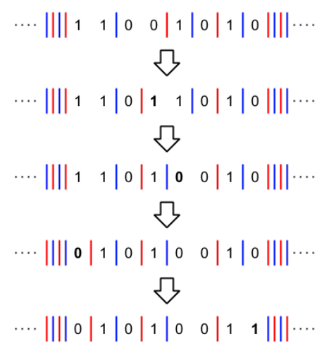 下面考虑如何输出方案,一般的想法是对每个元素记录转移到它的位置,但是空间限制不容许我们对\(a_i=-1\)的位置这么做。考虑只记录\(a_i\neq -1\)的位置的前驱,倒序输出的时候我们只跳到\(\neq -1\)的位置,如果它的前驱仍然满足\(\neq -1\)就直接跳,否则判断前面是否存在一个\(\neq -1\)的位置可以转移到当前位置,若存在则直接跳过去,若不存在则跳到上一个\(-1\)的位置即可。