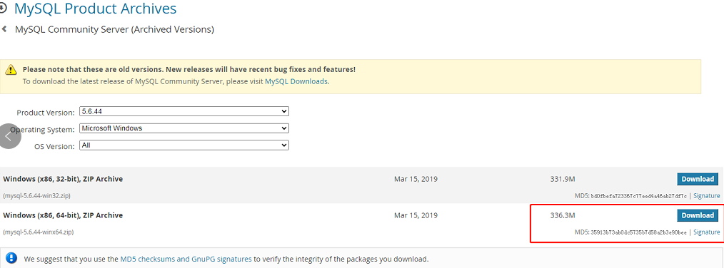 下拉框选择版本5.6版本即可,下载对应的压缩包