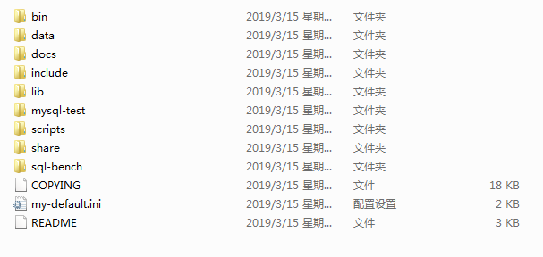 bin文件夹 存储的是启动程序文件 mysql.exe 客户端 mysqld.exe 服务端 data文件夹 存储的是数据相关的文件 my-default.ini 数据库的默认配置文件 README 类似于产品说明书