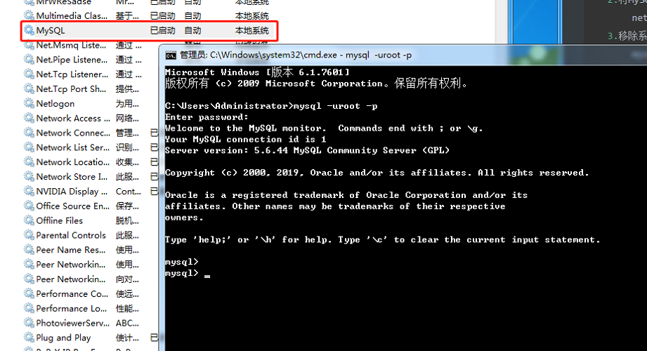 将MySQL服务添加到系统服务中,一定要以管理员身份打开cmd