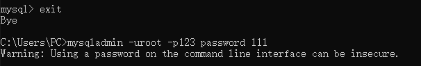 修改密码方式2: # 在不登陆的情况下修改 mysqladmin -u用户名 -p原密码 password 新密码