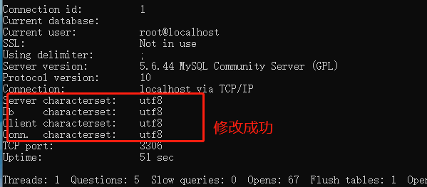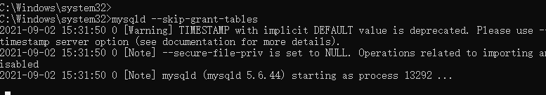 5.停止服务并正常启动 ctrl+c或者再以net stop mysql命令停止 net start mysql