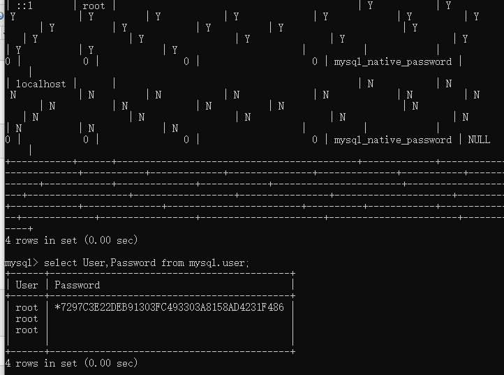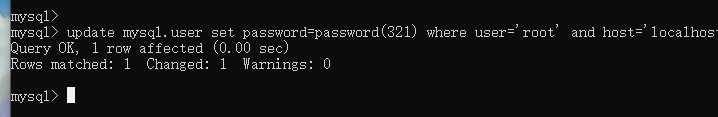 4.修改指定用户的密码 # 去存储用户数据表中修改密码数据 update mysql.user set password=password(321) where user="root" and host="localhost"; # 修改对应用户的密码
