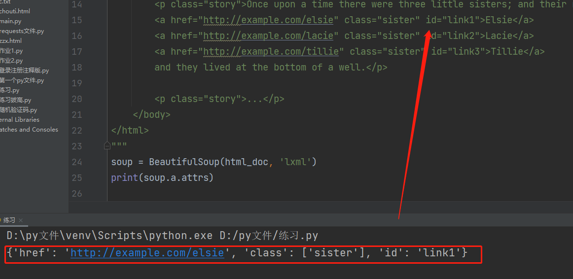 print(soup.a.attrs.get('href')) print(soup.a.get('href')) # 可以简写 省略attrs参数