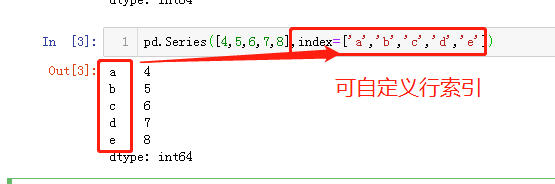 pd.Series([4,5,6,7,8],index=['a','b','c','d','e'])