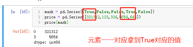 布尔值索引的本质就是按照对应关系筛选出True对应的数据