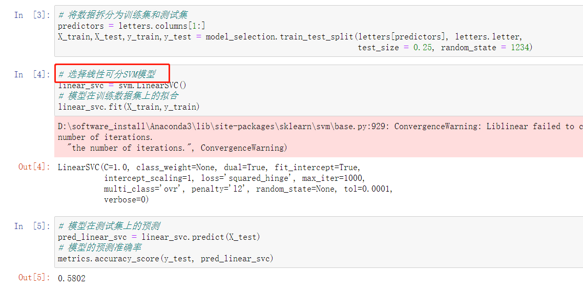 # 导入第三方模块 from sklearn import model_selection # 样本拆分 X_train,X_test,y_train,y_test = model_selection.train_test_split(skin.iloc[:,:3], skin.y, test_size = 0.25, random_state=1234) # 导入第三方模块 from sklearn import naive_bayes # 调用高斯朴素贝叶斯分类器的“类” gnb = naive_bayes.GaussianNB() # 模型拟合 gnb.fit(X_train, y_train) # 模型在测试数据集上的预测 gnb_pred = gnb.predict(X_test) # 各类别的预测数量 pd.Series(gnb_pred).value_counts()