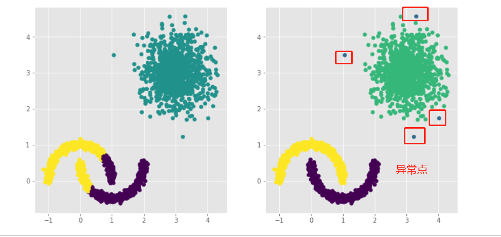 1.聚类效果容易受到异常样本点的影响 2.无法准确的将非球形样本进行合理的聚类 '''可以采用密度聚类解决上述两个缺点'''