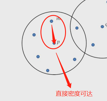3.直接密度可达:在核心对象内部的样本点到核心对象的距离